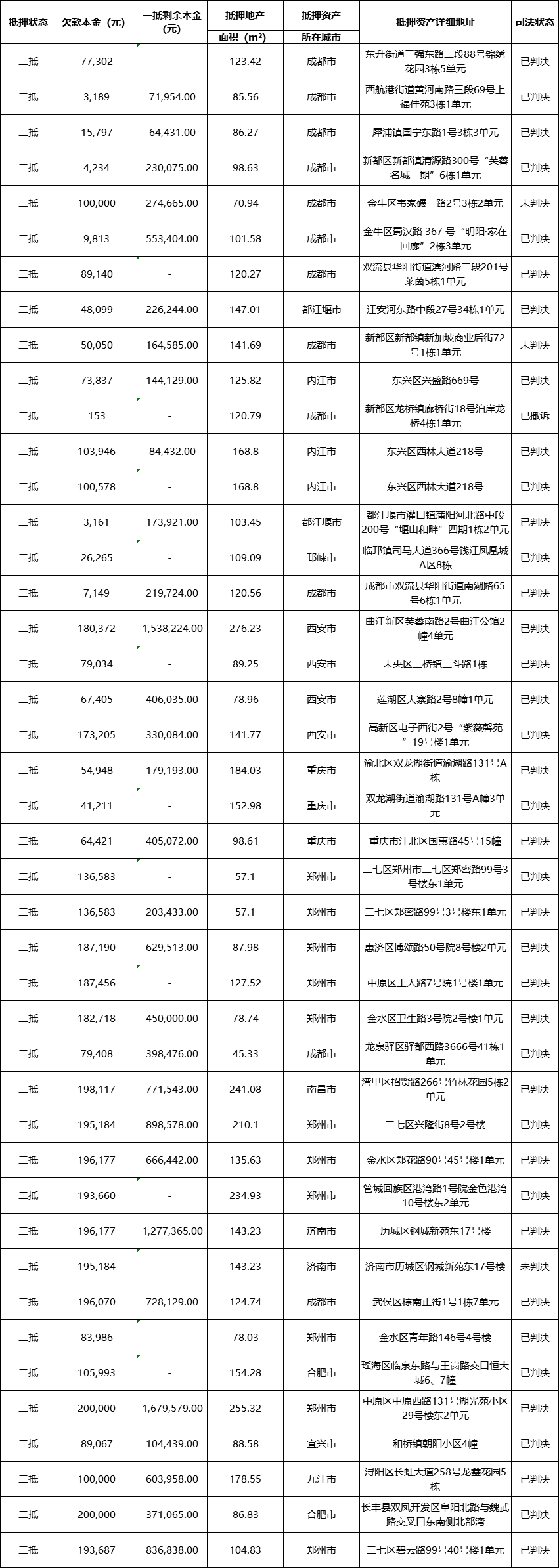 一、基本情況 債權所涉抵押資產(chǎn)均為住宅房產(chǎn),主要位于成都、重慶、西安、鄭州等地,本批次債權已完成訴訟判決,尚未進入執(zhí)行程序,債權清單詳見公告附件。 二、擬轉讓價格及方式:面議 三、營銷公告期:10個工作日 四、交易須知: 1、公告期間,意向投資方可至西南聯(lián)交所特殊資產(chǎn)交易中心咨詢項目信息或申請開展項目盡調。 2、意向投資方資格:具有完全民事行為能力、支付能力的法人、組織或自然人。 3、本公告內(nèi)容僅供參考,該標的債權的具體信息以實際盡調的借據(jù)、合同、法院判決等有關法律資料為準。 4、本公告涉及信息未經(jīng)許可不得以鏈接、文字、圖片等任何形式轉載,違者將追究相關法律責任。 五、盡職調查 營銷公告期內(nèi),意向投資方可向西南聯(lián)交所申請開展項目盡調,申請條件如下: 1、提交基礎資料 意向投資方為企業(yè)的:三證合一企業(yè)法人營業(yè)執(zhí)照(或企業(yè)法人營業(yè)執(zhí)照、組織機構代碼證、稅務登記證)、法定代表人身份證、保密承諾函。 意向投資方為自然人的:身份證、保密承諾函。 2、轉讓方要求的其他條件。 六、項目咨詢 聯(lián) 系 人: 郭經(jīng)理 聯(lián)系電話: 18215606528 地 址:成都市高新區(qū)天泰路120號交易所大廈 | |||